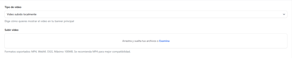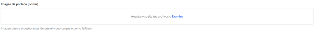 Para usarlo, solo debes seleccionar la opción Video subido localmente, subir tu archivo y, si lo deseas, agregar una imagen de portada (poster) que se muestre mientras carga el video.