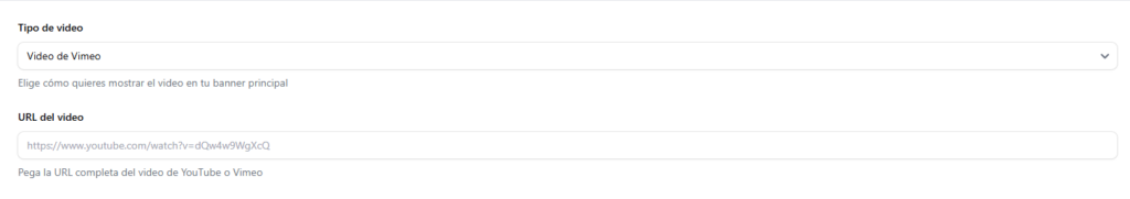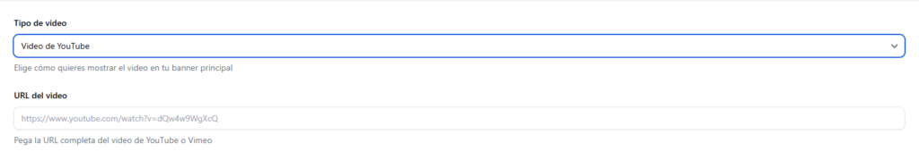 Solo debes copiar la URL del video de YouTube y pegarla en el campo correspondiente dentro de la configuración del Video Banner.